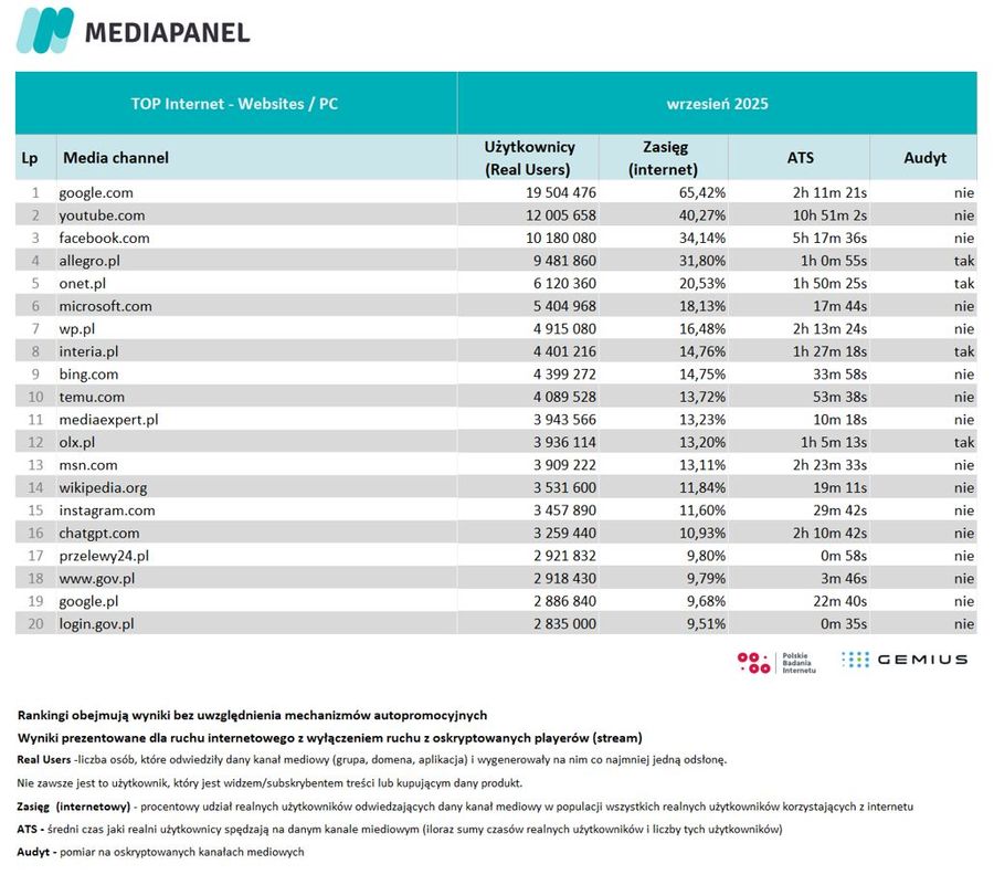 Przeczytaj także: Badania internetu Gemius/PBI VIII 2025