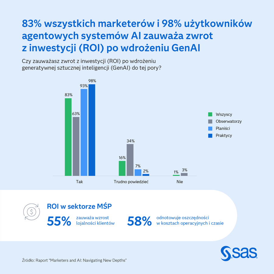 Obserwatorzy mogą wkrótce stracić czas - podkreśla Mike Blanchard, wiceprezes ds. technologii marketingowych i rozwiązań personalizacyjnych w SAS. Podczas gdy wciąż analizują potencjał Agentic AI, liderzy rynkowi już osiągają wymierne rezultaty – większą produktywność, efektywność kosztową i lepsze doświadczenia klientów.