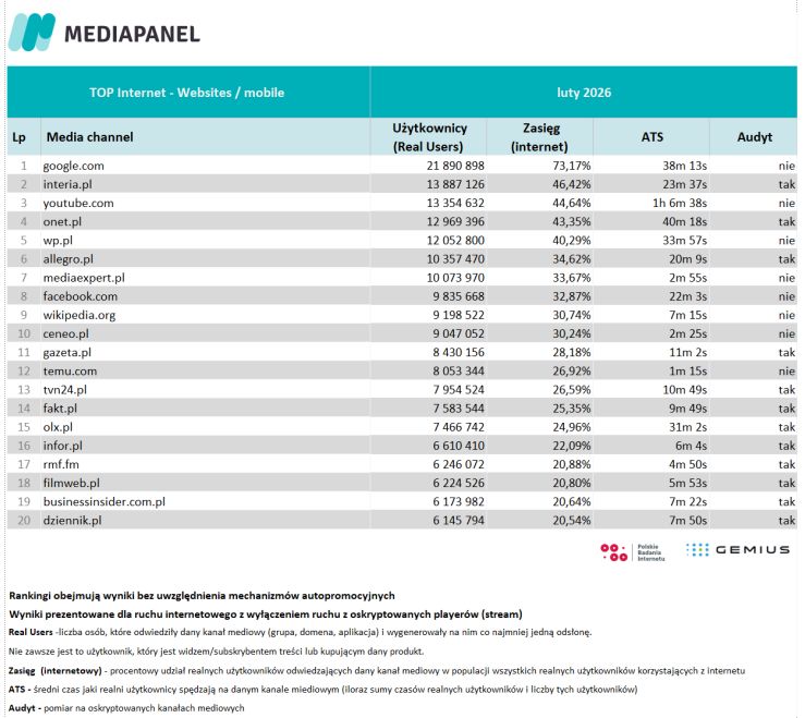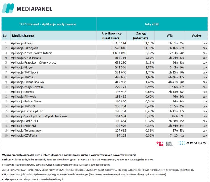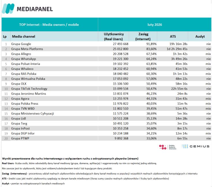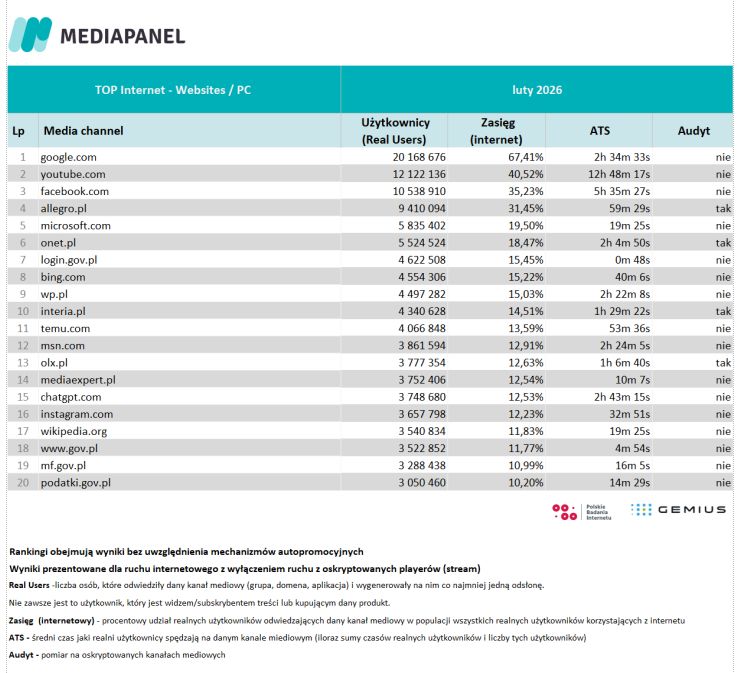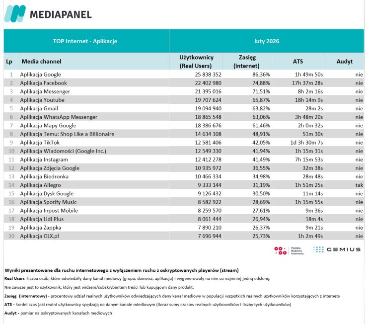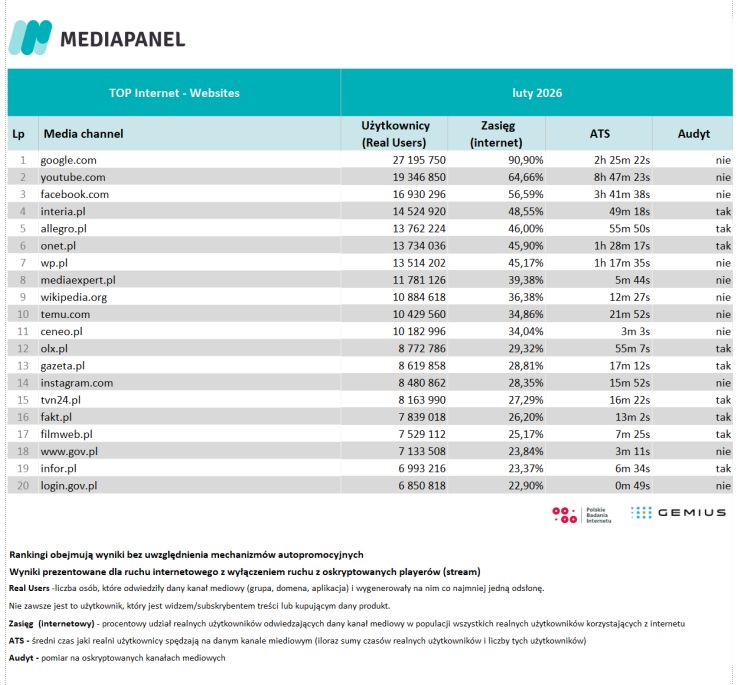 Przeczytaj także: Badania internetu Gemius/PBI I 2026