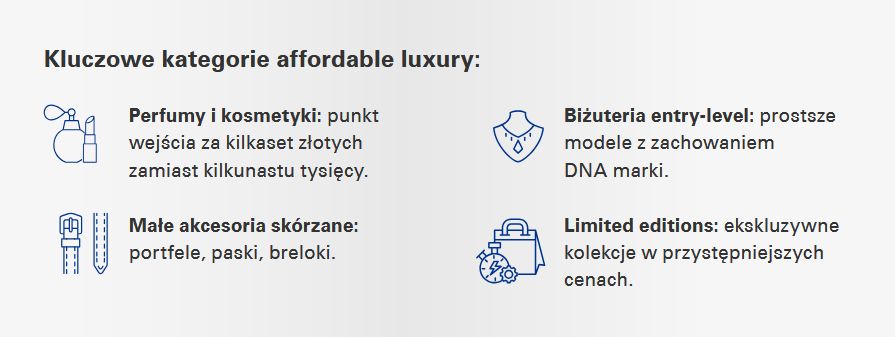Kluczowe kategorie affordable luxury Affordable luxury to subtelna równowaga